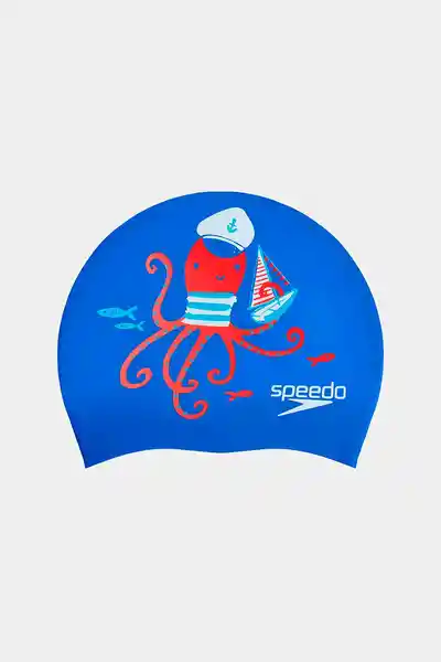 Nuestro Gorro de Natación Slogan Printed Junior es Ideal Para Cabellos Medios-Largos Con Este Gorro Silicona de Ajuste Cómodo y Seguro Cuidas el Cabello de tu Pequeño Del Cloro Pues Tiene un Diseño Ergonómico Que Ayuda a Crear un Contorno Liso e Hidrodinámico en el Agua Que Reduce la Resistencia y Disminuye la Entrada de Agua a su Cabello Este Gorro Para Natación de Silicona Azul Con Diseño Animado de Pulpo Speedo en Ambos Lados Está Fabricado Con Silicona Resistente y Duradera lo Que lo Hace un Gorro de Fácil Ajuste Que no Tirará Del Cabello de tu Niño y le Permitirá Estar Cómodo Durante Tus Entrenamientos o Sesiones en el Agua Para Que Pueda Concentrarse Plenamente en la Natación o Disfrutar de la Piscina Detalles: Ideal Para Sesiones de Natación Regulares Con Silicona Duradera Cómodo y Fácil de Colocar Mejor Ajuste Para Cabellos Medios y Largos.