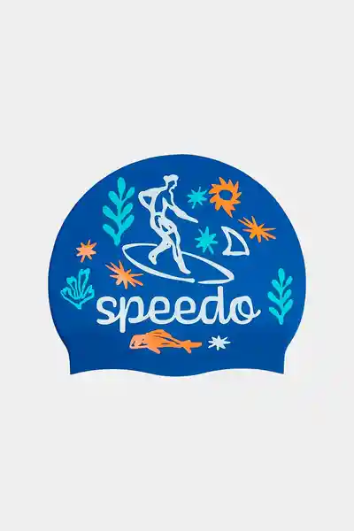 Nuestro Nuevo Gorro de Natación Slogan Printed Junior es Ideal Para Cabellos Medios-Largos. Con Este Gorro de Piscina de Ajuste Cómodo y Seguro Cuidas el Cabello de tu Pequeño Del Cloro Pues Tiene. Un Diseño Ergonómico Que Ayuda a Crear un Contorno Liso e Hidrodinámico en el Agua Que Reduce la Resistencia. Y Disminuye la Entrada de Agua a su Cabello. Este Gorro Para Natación de Silicona Azul Con Diseño Multicolor Surfero de Speedo en Ambos Lados. Está Fabricado Con Silicona Resistente y Duradera lo Que lo Hace un Gorro de Fácil Ajuste Que no Tirará Del Cabello. De tu Niño y le Permitirá Estar Cómodo Durante Tus Entrenamientos o Sesiones en el Agua Para Que Pueda Concentrarse. Plenamente en la Natación o Disfrutar de la Piscina.