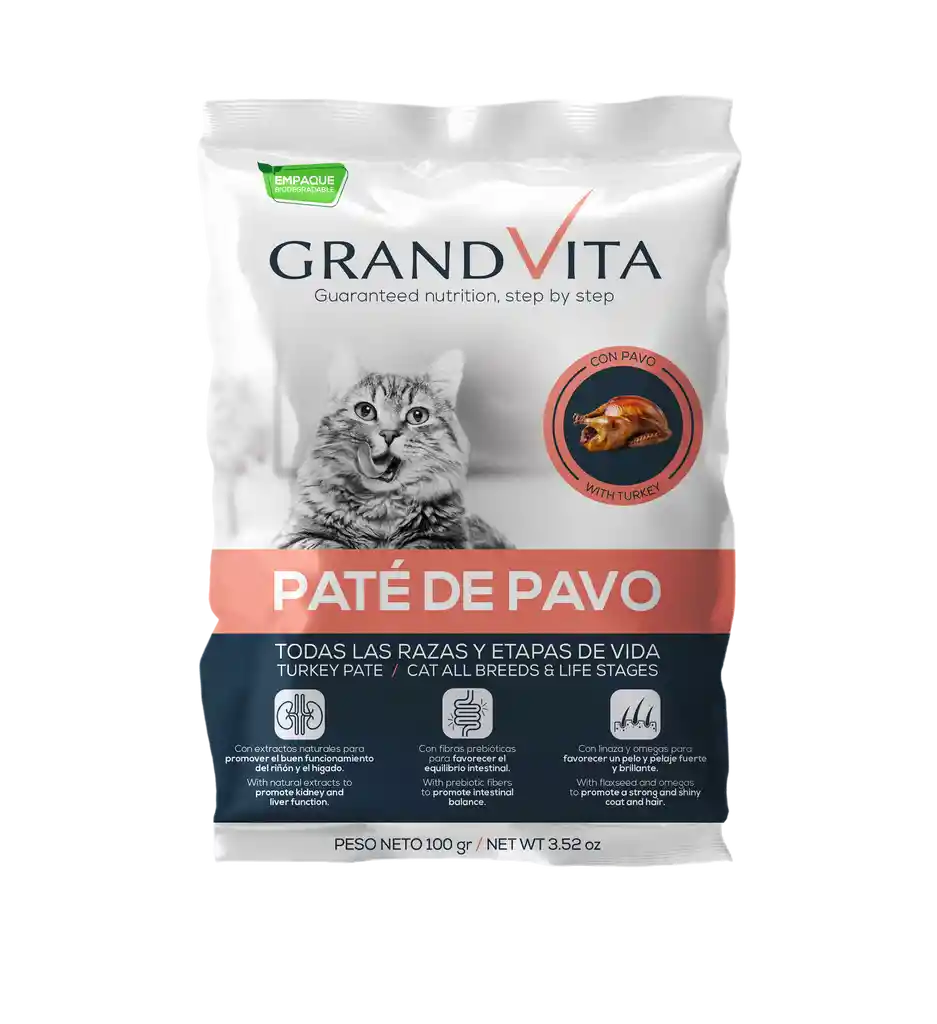 Grand Vita Comida Húmeda Para Gato Paté Pavo 100 Gr
