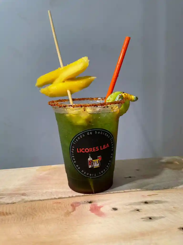 Nuestra mezcla helada de Whisky, Smirnoff y Coctel triple SEC, con sabor a mango con un toque ácido y picantoso hace el perfecto contraste con las gomitas enchiladas. Con un tamaño de 7Oz