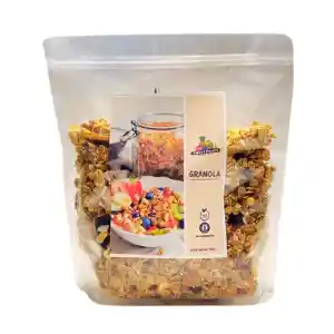 Disfruta de nuestra granola llena de sabor y energía natural. Elaborada con crujientes hojuelas de maíz, nutritivos frutos secos, coco deshidratado y uvas pasas que aportan un toque dulce y natural, sin necesidad de azúcar añadida. Perfecta para tus desayunos, meriendas o para disfrutar como snack saludable en cualquier momento del día. ¡Ligera, deliciosa y 100 % natural!