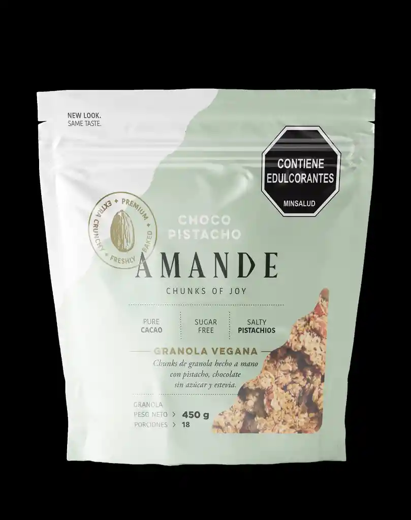 Es una granola premium que mezcla avena crujiente con trozos de chocolate y pistacho. Su sabor indulgente y equilibrado combina el dulzor del cacao con la riqueza de los pistachos, ofreciendo un snack nutritivo y delicioso para cualquier momento del día, vegana.
