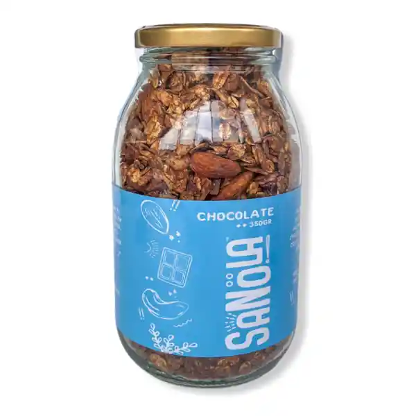 Granola a Base de Avena en Hojuelas, Almendras, Marañón, Chocolate Semi Amargo, Cocoa, Canela y Miel de Abejas Orgánica. Frasco