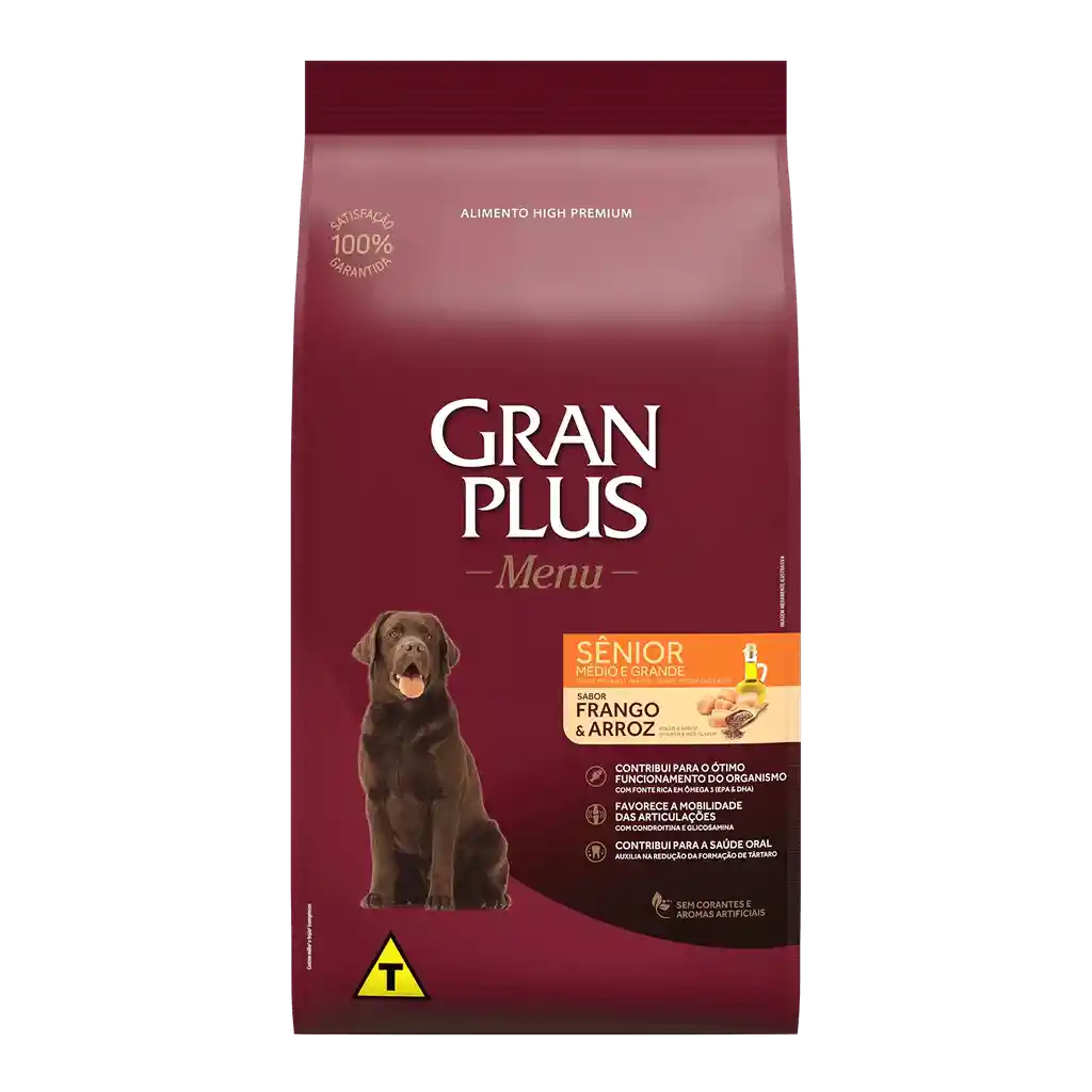 Granplus presenta su Alimento para Perro Senior con delicioso sabor a Pollo y Arroz, ofreciendo una experiencia irresistible y nutritiva para tu compañero de edad avanzada. Enriquecido con omega 3 (EPA y DHA), promueve el óptimo funcionamiento del organismo. Además, con condroitina y glucosamina, favorece la movilidad articular, manteniendo a tu perro activo por más tiempo. También ayuda a reducir la formación de sarro, contribuyendo a la salud bucal. Sin colorantes ni sabores artificiales, es una opción segura y saludable para tu perro mayor. Confía en Granplus para cuidar de su vitalidad y bienestar en esta etapa de la vida. Ofrezca el alimento siguiendo la cantidad diaria recomendada, dividida en dos o más porciones. Las cantidades indicadas son solo una orientación y pueden variar dependiendo del perro y del nivel de actividad física.