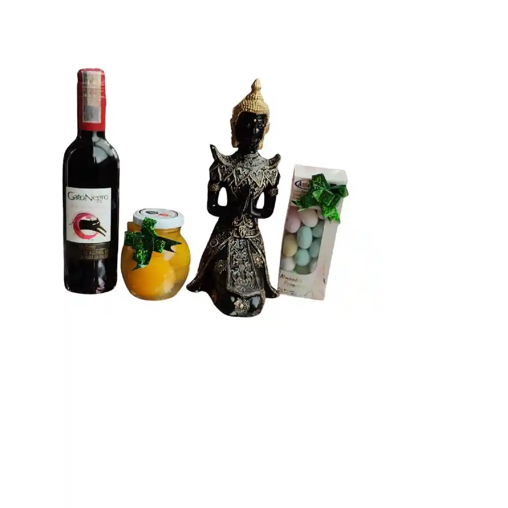 BUDA DE GRATUTUD UN HERMOSO DETALLE ACOMPAÑADO DE ALMENDRAS DURAZNOS Y VINO