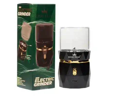 El grinder eléctrico 🔋 de King Palm! Es rápido, eficiente y está listo para hacerte la vida más fácil. 🔘 Encendido simple : presione el botón 5️⃣ veces para encender/apagar. Muele tus hierbas en un instante ⚡ con solo un clic. 📦 ¿Qué hay en la caja? Molinillo eléctrico de hierbas secas Cargador USB tipo C Cepillo de limpieza Tarro extra