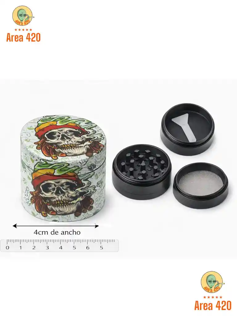 Grinder Trillador Fabricado en material resistente, cuenta con 3 partes que permiten triturar de manera eficiente. Su tamaño de 4 cm lo hace perfecto para llevar a cualquier lado.