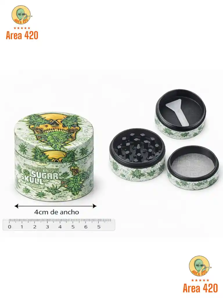 Grinder Trillador Fabricado en material resistente, cuenta con 3 partes que permiten triturar de manera eficiente. Su tamaño de 4 cm lo hace perfecto para llevar a cualquier lado.