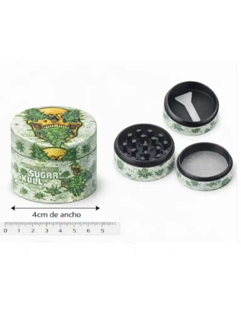 Grinder Trillador Fabricado en material resistente, cuenta con 3 partes que permiten triturar de manera eficiente. Su tamaño de 4 cm lo hace perfecto para llevar a cualquier lado.