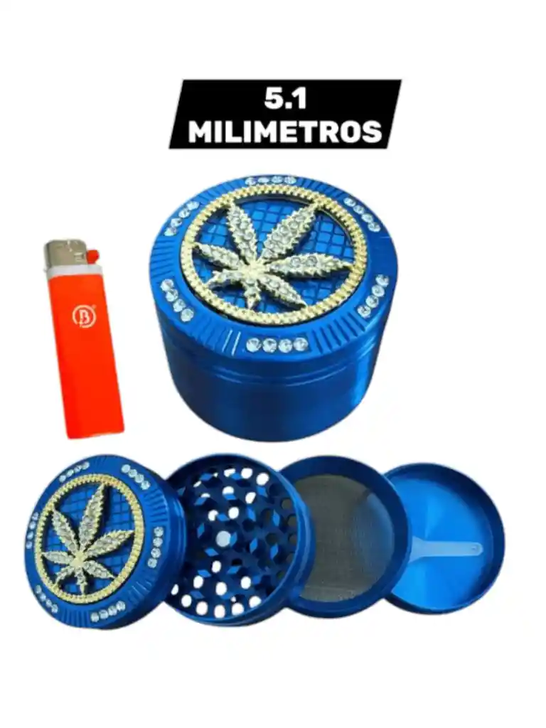 Grinder metálico de 51 mm con diseño diamantado , resistente y de varias piezas para un molido uniforme. Incluye candela. Ideal para llevar y usar con comodidad.