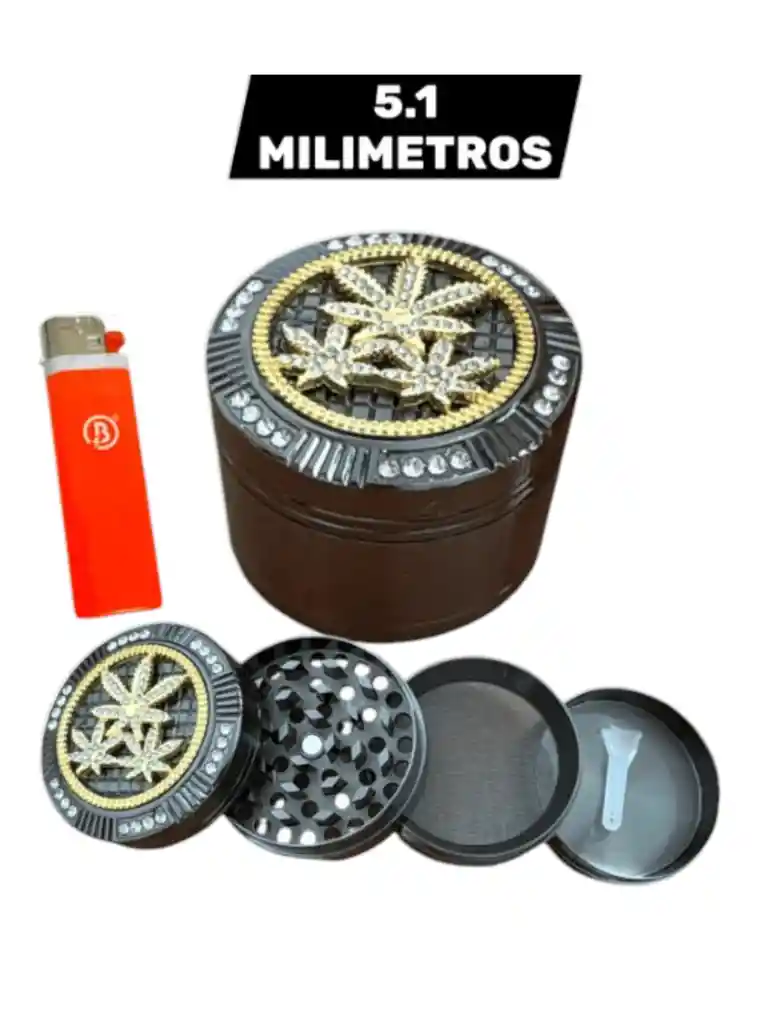 Grinder metálico de 51 mm con diseño diamantado , resistente y de varias piezas para un molido uniforme. Incluye candela. Ideal para llevar y usar con comodidad.