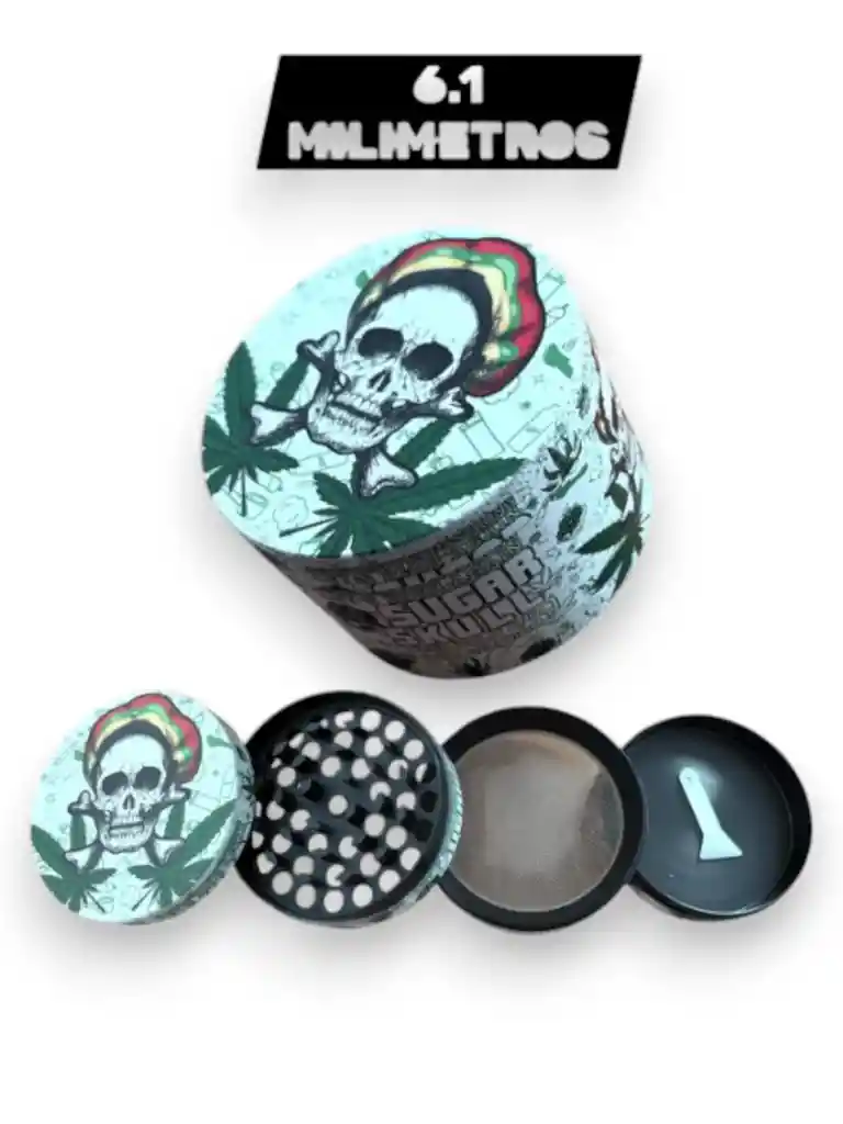Grinder metálico de 61 mm con diseño metalico, resistente y de varias piezas para un molido uniforme. Incluye candela. Ideal para llevar y usar con comodidad.