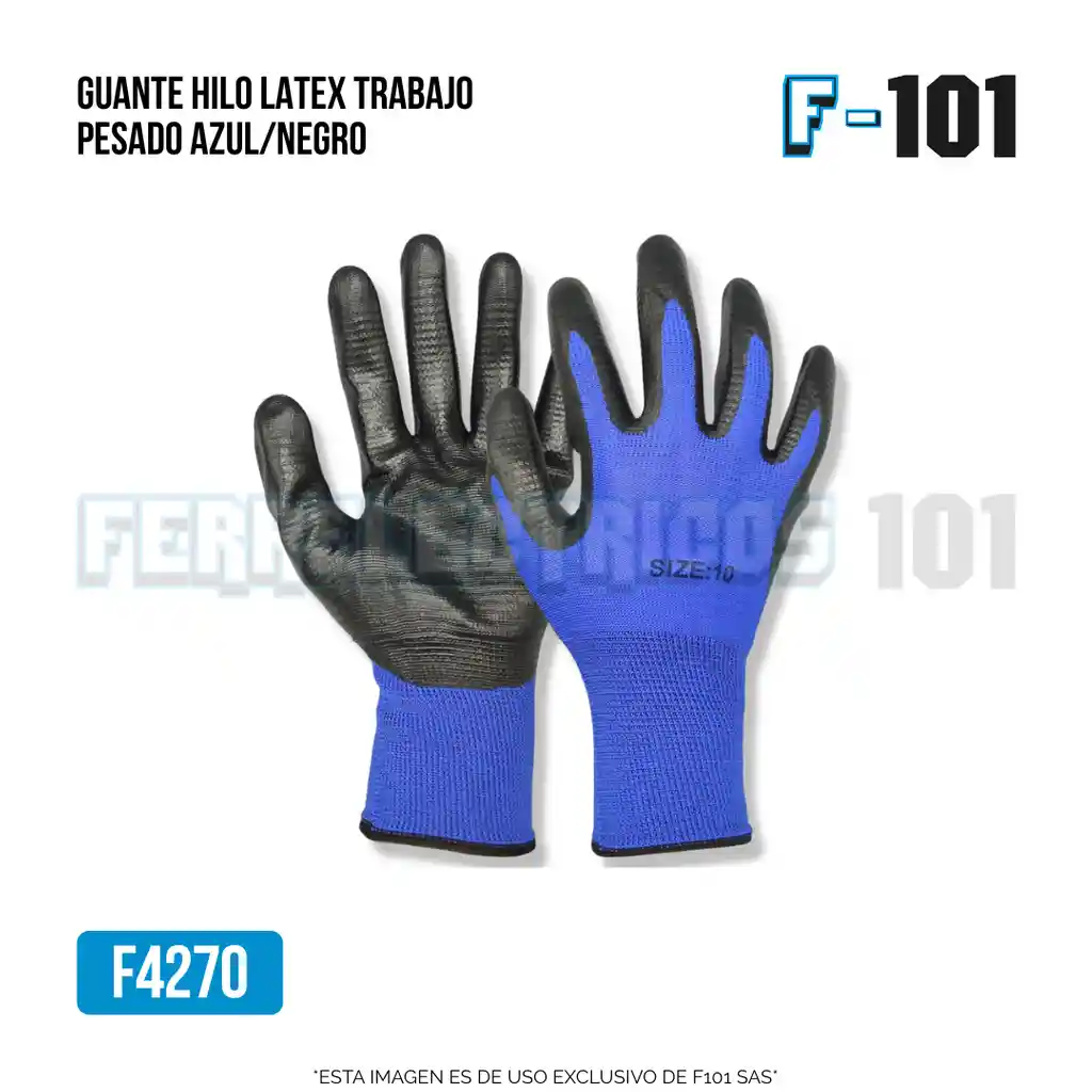 Guante de trabajo pesado fabricado en hilo con recubrimiento de látex antideslizante. Proporciona excelente agarre y protección contra abrasión. Ideal para labores de construcción, carga o jardinería. Color azul con negro.