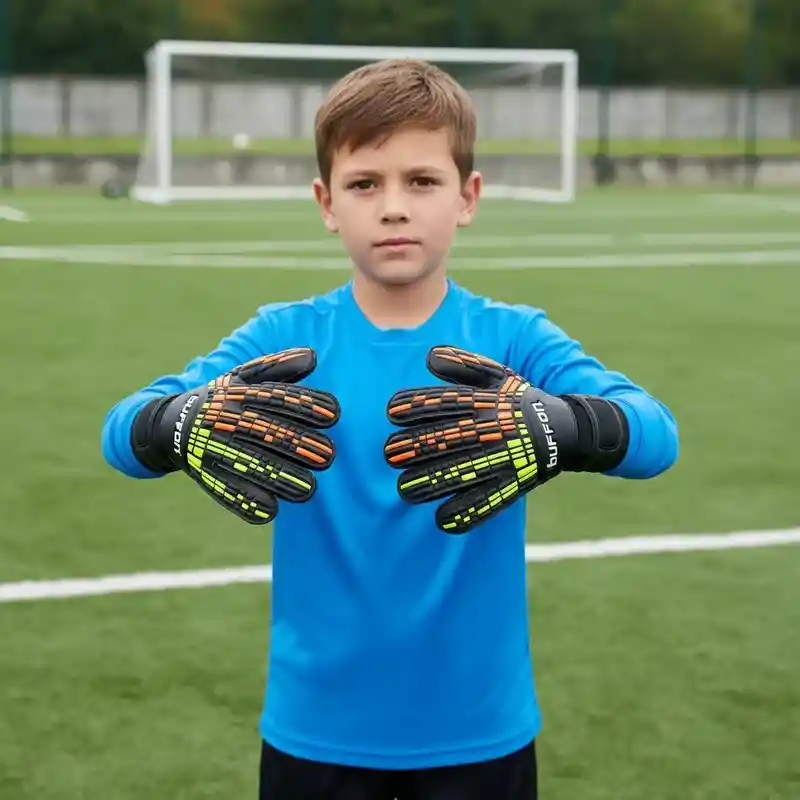 GUANTES FUTBOL BUFFON KIDS PIXEL BASIC - Confianza Para Los Pequeños/ Negro - Neón - Naranja / Talla: 6 Los BUFFON KIDS PIXEL BASIC – Infantil han sido diseñados para acompañar a los futuros porteros en su proceso de formación, ofreciendo rendimiento, comodidad y protección en cada entrenamiento o partido. Con un diseño moderno y funcional, estos guantes brindan libertad de movimiento y estabilidad, permitiendo que los jóvenes arqueros se desempeñen con seguridad y confianza bajo el arco. Su palma de látex alemán de alta calidad garantiza un agarre excepcional y una absorción óptima de impactos, proporcionando control total del balón incluso en condiciones húmedas o ante disparos potentes. El material, además, ofrece gran resistencia a la abrasión, asegurando durabilidad y desempeño constante con el paso del tiempo. El corte ergonómico del guante se adapta naturalmente a la forma de la mano infantil, favoreciendo la flexibilidad y el confort durante el juego. La estructura ligera y bien equilibrada permite una movilidad fluida, mientras que las zonas reforzadas de amortiguación protegen las manos y los dedos ante impactos repetidos. Para una sujeción segura, incorpora un sistema de cierre completo con correa ajustable de velcro, que envuelve firmemente la muñeca y proporciona ajuste personalizado, estabilidad y soporte adicional en cada atrapada o despeje. Con los BUFFON KIDS PIXEL BASIC, cada jugada se convierte en una oportunidad para aprender, mejorar y brillar. Son el aliado perfecto para los jóvenes porteros que buscan confianza, estilo y la calidad de la marca BUFFON. CARACTERÍSTICAS: - Palma: Látex alemán de alto rendimiento, con excelente agarre y absorción de impactos. - Cuerpo: Material sintético textil de alta resistencia y flexibilidad. - Forro interno: Tela suave para mayor comodidad y control de la humedad. - Cierre: Correa completa con velcro ajustable para un soporte firme y personalizado. - Control total del balón con agarre profesional. - Categoría: Guantes de portero infantil. - Corte Hybrido. - Tipo de uso: Entrenamiento y competencia. RECOMENDACIÓN: Humedecer la palma de los guantes antes de usarlos en cada partido, para mejorar la adherencia de los mismos. Se recomienda lavarlos con frecuencia, usando agua a temperatura ambiente, con jabón de manos o shampoo y dejarlos secar a la sombra. La suciedad reduce el agarre y acorta el tiempo de vida útil del producto. GUÍA DE TALLAS: Con una cinta métrica, rodea la palma de tu mano, observa cuanto mide la circunferencia en centímetros y escoge la talla indicada. Si desea el guante justo seleccionar la talla que le indica, pero si desea el guante un poco suelto seleccionar la talla siguiente. Talla 4= 12cm a 14 cm. / Talla 5= 14 a 16 cm. / Talla 6= 16 a 18 cm. **TENER PRESENTE, QUE LA PALMA DE DICHOS GUANTES ESTÁ HECHA DE LÁTEX NATURAL. LA EXTREMA SUAVIDAD DE ESTE MATERIAL INFLUYE, EN SU DURACIÓN, HASTA EL EXTREMO DE QUE APOYAR LA PALMA EN EL SUELO O CÉSPED, INCLUSO DURANTE SU PRIMER USO, PUEDE PROVOCAR UNA EROSIÓN O RASPADURA EN EL LÁTEX. ESTE MATERIAL ES DELICADO Y SE RECOMIENDA UN OPTIMO USO PARA QUE NO PIERDA SU PRINCIPAL FUNCIÓN, QUE ES EL AGARRE. POR ESTA RAZÓN, EL LÁTEX NO TIENE GARANTÍA. **LA GARANTÍA CUBRE ÚNICAMENTE DEFECTOS ASOCIADOS A LA FABRICACIÓN DEL PRODUCTO O AL ESTADO DE LOS MATERIALES, CUALQUIER DAÑO CAUSADO POR USO, MANIPULACIÓN O MANTENIMIENTO INAPROPIADO DEL PRODUCTO, NO ESTÁ CONTEMPLADO DENTRO DE LA GARANTÍA. DISTRIBUIDOR AUTORIZADO Envíos a nivel nacional ONE ZONE SPORT NIT: 901.451.888-6
