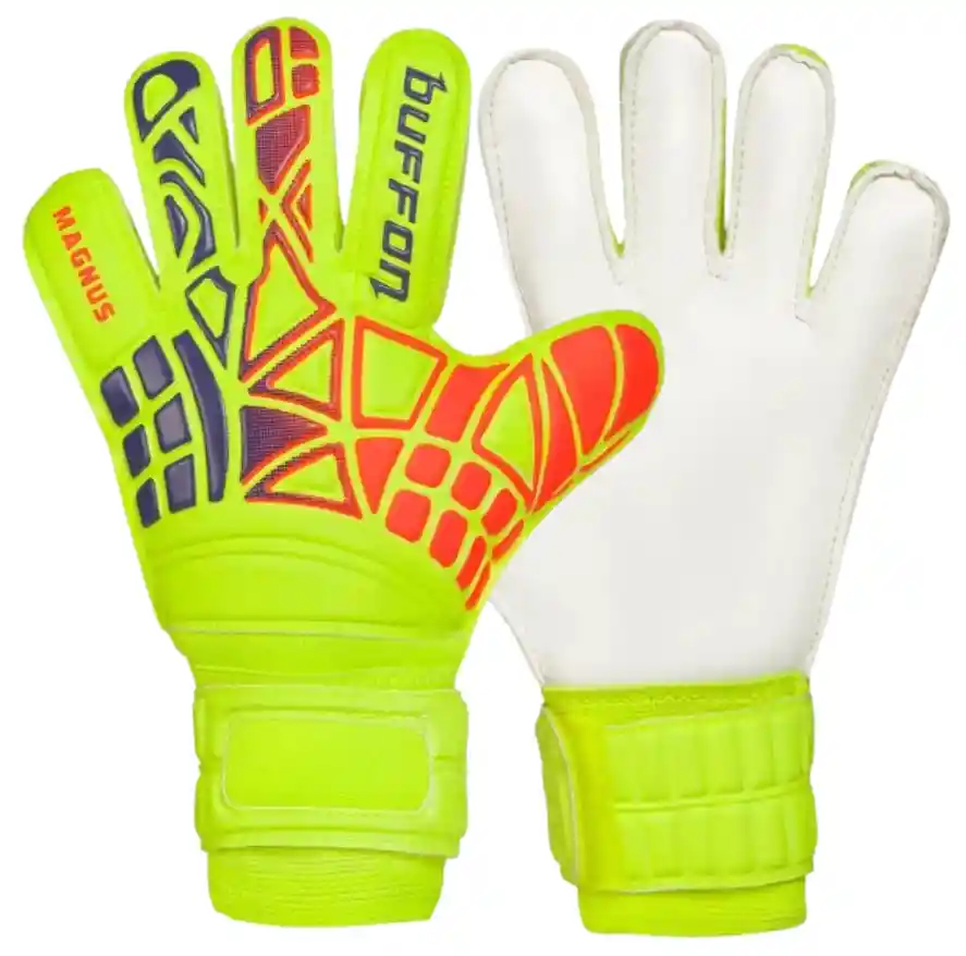 GUANTES FUTBOL BUFFON SEMIPROF MAGNUS. TALLA: 9 Los guantes de fútbol Buffon Magnus Semiprof Magno son una opción destacada para arqueros semiprofesionales que buscan un equilibrio entre rendimiento, protección y durabilidad. Diseñados para adaptarse a diversas condiciones de juego, estos guantes ofrecen características técnicas que los hacen aptos tanto para césped natural como sintético, en terrenos secos o húmedos. CARACTERÍSTICAS: - Corte Flat: Ofrece un ajuste cómodo y anatómico, adaptándose bien a la forma de la mano. - Palma de látex alemán de 3 mm: Proporciona un excelente agarre y control del balón, ideal para condiciones de juego variadas. - Dorso de PVC o neopreno: Brinda comodidad y soporte adicional. - Amarre de media vuelta con velcro de 5 cm de ancho: Permite un ajuste seguro y personalizado. - Orificios de ventilación: Ubicados en los laterales de los dedos, mejoran la transpirabilidad y mantienen las manos frescas. *RECOMENDACIONES DE USO: Humedecer la palma antes de usarse, limpiar solo con tela suave y húmeda, no planchar ni exponer al sol. GUÍA DE TALLAS: Con una cinta métrica, rodea la palma de tu mano, observa cuanto mide la circunferencia en centímetros y escoge la talla indicada. Talla 3 = 10 - 12 cm. Talla 4 = 12 - 14 cm. Talla 5 = 14 - 16 cm. Talla 6 = 16 - 18 cm. Talla 7 = 18- 20 cm. Talla 8 = 20 - 21 cm. Talla 9 = 21- 22 cm. Talla 10 = 22 - 24 cm. Talla 11 = 25 - 26 cm. **TENER PRESENTE, QUE LA PALMA DE DICHOS GUANTES ESTÁ HECHA DE LÁTEX NATURAL. LA EXTREMA SUAVIDAD DE ESTE MATERIAL INFLUYE, EN SU DURACIÓN, HASTA EL EXTREMO DE QUE APOYAR LA PALMA EN EL SUELO O CÉSPED, INCLUSO DURANTE SU PRIMER USO, PUEDE PROVOCAR UNA EROSIÓN O RASPADURA EN EL LÁTEX. ESTE MATERIAL ES DELICADO Y SE RECOMIENDA UN OPTIMO USO PARA QUE NO PIERDA SU PRINCIPAL FUNCIÓN, QUE ES EL AGARRE. POR ESTA RAZÓN, EL LÁTEX NO TIENE GARANTÍA. DISTRIBUIDOR AUTORIZADO Envíos a nivel nacional. ONE ZONE SPORT NIT: 901.451.888-6