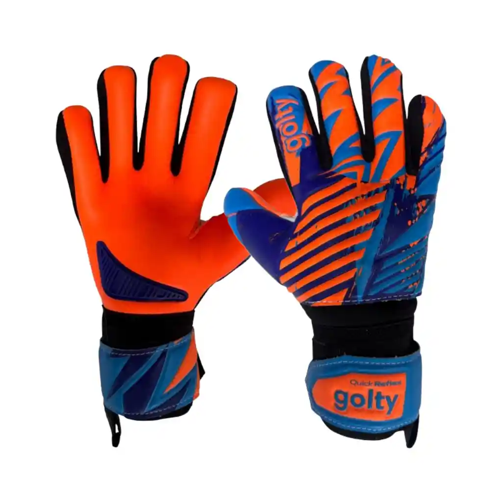 GUANTES DE FÚTBOL GOLTY QUICK REFLEX COMPETICION LÁTEX ALEMÁN/ Naranja Azul - Talla: 7 ¡Máxima protección sin perder agilidad! Presentamos los guantes de fútbol QUICK FLEX COMPETICIÓN ANTI FRACTURA de Golty, diseñados para porteros que exigen rendimiento, seguridad y comodidad. Equipados con tecnología Finger Guard Pro, protegen tus dedos contra torceduras y lesiones, permitiendo movimientos naturales y ágiles en cada atajada. Su corte negativo con refuerzos internos en la palma brinda un ajuste perfecto, mayor durabilidad y excelente agarre sin comprometer tu rendimiento. Fabricados con látex de alta adherencia y diseño ergonómico, ideales tanto para formación, como para nivel amateur o profesional. Con varillas anti fractura, elástico ajustable y un diseño moderno, estos guantes son el complemento perfecto para todo arquero que quiera dominar el arco con confianza. CARACTERÍSTICAS: - Guante de Corte Negativo. - Amarre de una vuelta. - 100% Látex de 7mm (3 de espuma, 4 de látex). - Palma superior sintética. - Látex: alemán. - Agarre para colocación del guante. - Para césped SECO y HÚMEDO. *RECOMENDACIONES DE USO: Humedecer la palma antes de usarse, limpiar solo con tela suave y húmeda, no planchar ni exponer al sol. GUÍA DE TALLAS: Con una cinta métrica, rodea la palma de tu mano, observa cuanto mide la circunferencia en centímetros y escoge la talla indicada. Talla 4 = 12 - 14 cm. Talla 5 = 14 - 16 cm. Talla 6 = 16 - 18 cm. Talla 7 = 18- 20 cm. Talla 8 = 20 - 21 cm. Talla 9 = 21- 22 cm. Talla 10 = 22 - 24 cm. Talla 11 = 25 - 26 cm. **TENER PRESENTE, QUE LA PALMA DE DICHOS GUANTES ESTÁ HECHA DE LÁTEX NATURAL. LA EXTREMA SUAVIDAD DE ESTE MATERIAL INFLUYE, EN SU DURACIÓN, HASTA EL EXTREMO DE QUE APOYAR LA PALMA EN EL SUELO O CÉSPED, INCLUSO DURANTE SU PRIMER USO, PUEDE PROVOCAR UNA EROSIÓN O RASPADURA EN EL LÁTEX. ESTE MATERIAL ES DELICADO Y SE RECOMIENDA UN ÓPTIMO USO PARA QUE NO PIERDA SU PRINCIPAL FUNCIÓN, QUE ES EL AGARRE. POR ESTA RAZÓN, EL LÁTEX NO TIENE GARANTÍA. DISTRIBUIDOR AUTORIZADO Envíos a nivel nacional. ONE ZONE SPORT NIT: 901.451.888-6