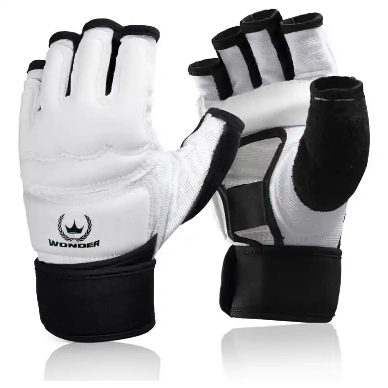 Guantes Taekwondo Artes Marciales Protector Boxeo Karate protege tus manos muy bien y es adecuado para taekwondo, jousting, boxeo, bolsa de velocidad, artes marciales, sparring, muay thai, entrenamiento UFC o cualquier otra rutina de peso ligero. Efecto de amortiguación: este guante está relleno de pegamento resistente, lo que hace que tenga un efecto de amortiguación. Además, puede absorber eficazmente la fuerza de impacto y reducir el dolor causado por el boxeo. Resistencia al desgaste: el material de poliuretano de alta calidad hace que sea resistente al desgaste y duradero frente a condiciones de entrenamiento duras y complejas. Material de poliuretano ligero que puede ayudarte a reducir la carga cuando haces ejercicio. Buena permeabilidad al aire: diseño de dedo dividido y gran área de fugas de palma, mejora eficazmente su permeabilidad al aire. La parte trasera del pulgar con material de tela de rizo, tiene una fuerte función de absorción del sudor, que puede ayudarte a limpiar la mayoría del sudor de la cara en ejercicio extenuante. El diseño único hace que los concursantes se sientan cómodos. Fácil de usar: la almohadilla de fijación de la banda elástica maximiza la estabilidad de los guantes. La cinta adhesiva ancha te permite ajustar tu tamaño para adaptarse al ancho de tu muñeca y proporciona un excelente soporte de muñeca. - Color: Blanco. - Material: 20% PU, 60% Espuma, 20% Poliester. - Estilo: Taekwondo. - Talla : S, M, L y XL. El Paquete incluye: - Par guantes Taekwondo Artes Marciales.