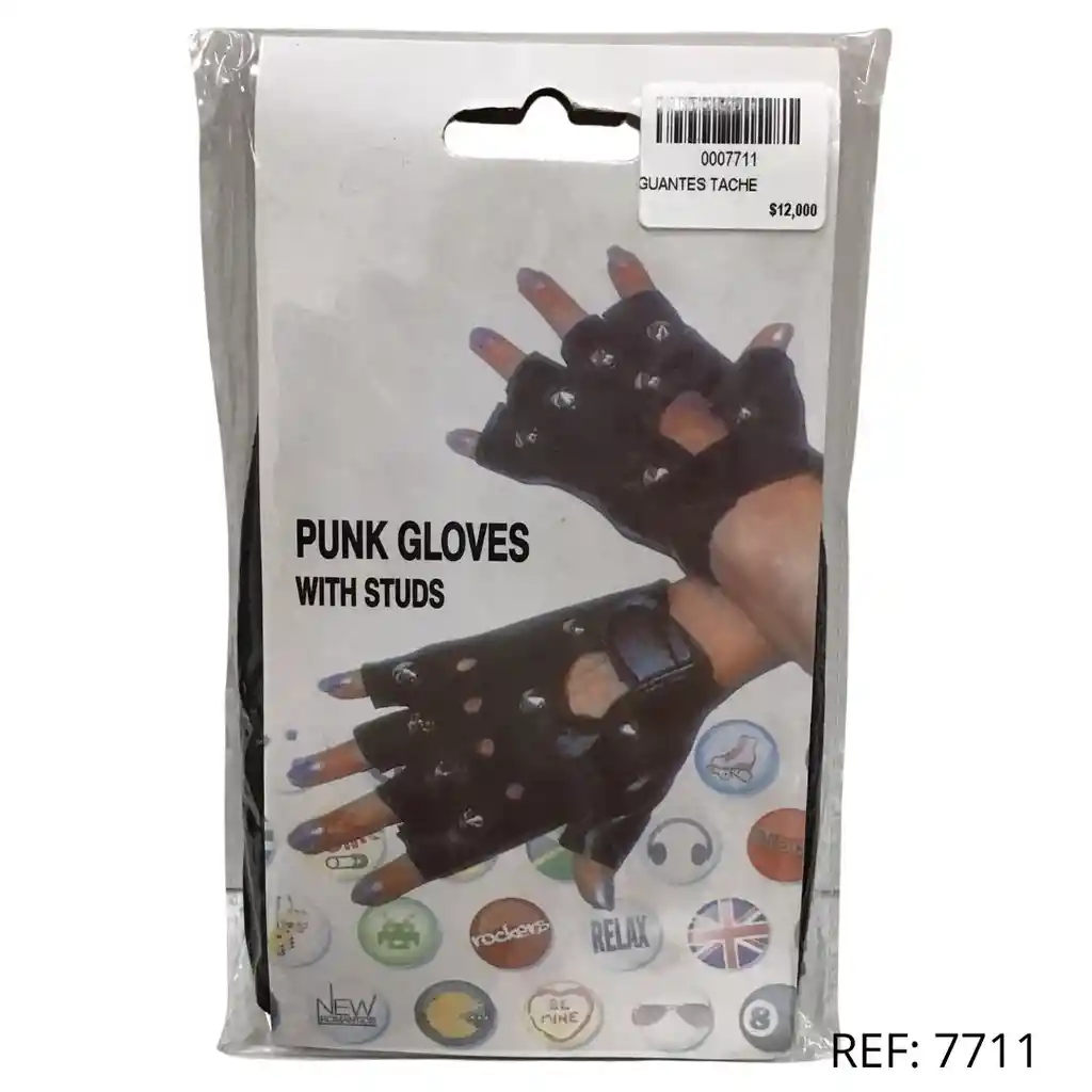 Guantes estilo punk sin dedos, en material tipo cuero sintético, decorados con tachones metálicos. Perfectos para disfraces, conciertos o looks alternativos.