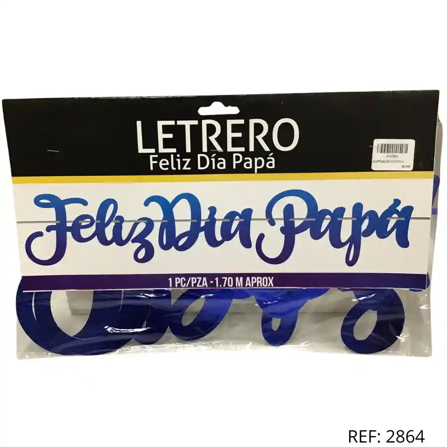 Letrero azul metalizado “Feliz Día Papá”. Perfecto para decorar y destacar en cualquier celebración.