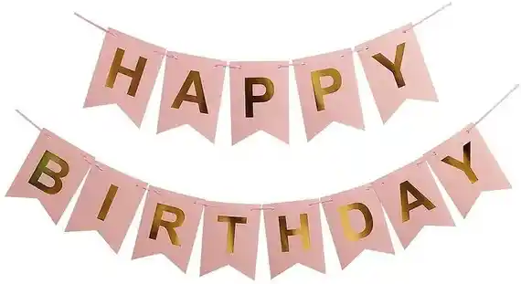 Descripción: Hermosa guirnalda decorativa con banderines en color rosa y letras doradas que forman la frase “Happy Birthday”. Su diseño elegante y festivo la convierte en el complemento perfecto para resaltar cualquier celebración de cumpleaños. Fácil de colgar en paredes, mesas o fondos para fotos, aporta un toque moderno y especial al ambiente de la fiesta.