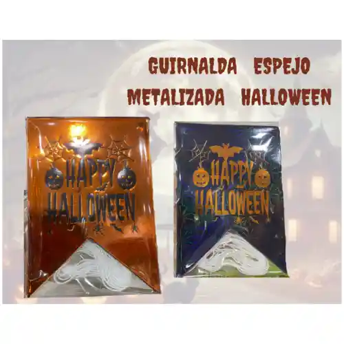 GUIRNALDA METALIZADA HAPPY HALLOWEEN EN COLOR NEGRO O NARANJA SUJETA A INVENTARIO
