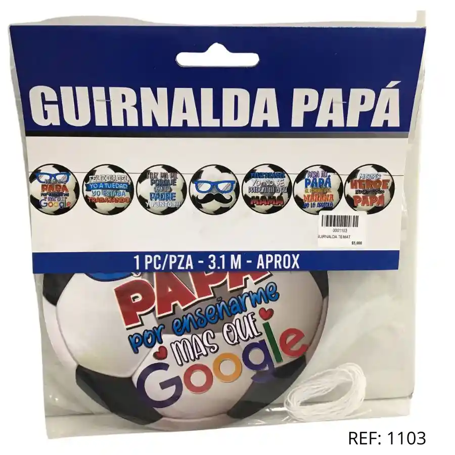 Guirnalda temática con mensajes para papá. Ideal para decorar espacios en su día especial.
