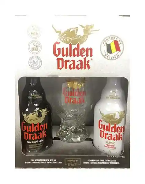 Pack Gulden Draak Contiene 3 Unidades. Cerveza Belga 2 Und + Vaso 1 Und.