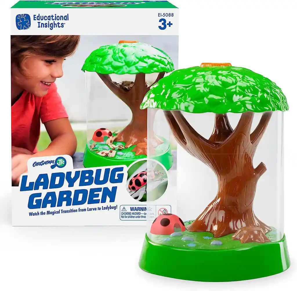 Empaque de regalo sin costo adicional, escríbenos al finalizar la compra. 3 Años+ ¡Prepárate para una aventura científica fascinante con el juego GeoSafari Jr. Ladybug Garden! Conviértete en un científico y observa el asombroso proceso de crecimiento de las larvas de mariquita hasta convertirse en adorables insectos adultos en este seguro hábitat de jardín. El juego incluye un certificado que te permite recibir tus propias larvas de mariquita. Una vez que las larvas lleguen a tu jardín, podrás observar su transformación de cerca. Con tres puntos de aumento, podrá ver todos los detalles de su desarrollo, mientras que la parte superior giratoria del hábitat hace que alimentar a las larvas sea seguro y fácil. El GeoSafari Jr. Ladybug Garden no solo brinda una experiencia emocionante, sino que también apoya el aprendizaje STEM (ciencia, tecnología, ingeniería y matemáticas), y fomenta un amor de por vida por la ciencia y la naturaleza. Con este juego, los niños podrán aprender sobre el ciclo de vida de las mariquitas y apreciar la belleza y la importancia de los insectos en nuestro entorno. ¡Embárcate en una aventura científica única con el jardín de mariquita GeoSafari Jr.! Tamaño: 26 x 20 x 20cm
