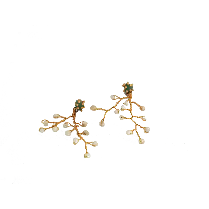 Aretes Largos En Alambre Y Perlas Forma De Rama Con Una Piedra 7 Cms Alto * 4 Cms Ancho
