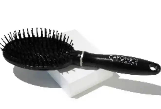 El cepillo de pelo de Capone No 3 es un cepillo plano con dientes puntiagudos en forma de bola negra. Su función es dar cuerpo y textura al cabello. Es ideal para usarlo para dar forma al cabello en un peinado y. sobre todo. para despegar la raíz del cuero cabelludo