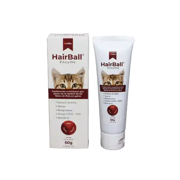 HairBall Enzyme es un suplemento alimenticio con extracto de Malta, Enzimas digestivas, Ácidos grasos Omega 3, PEG (polietilenglicol), y aceites minerales que ayudan a evitar la formación de bolas de pelo y que facilitan el tránsito intestinal para su normal excreción