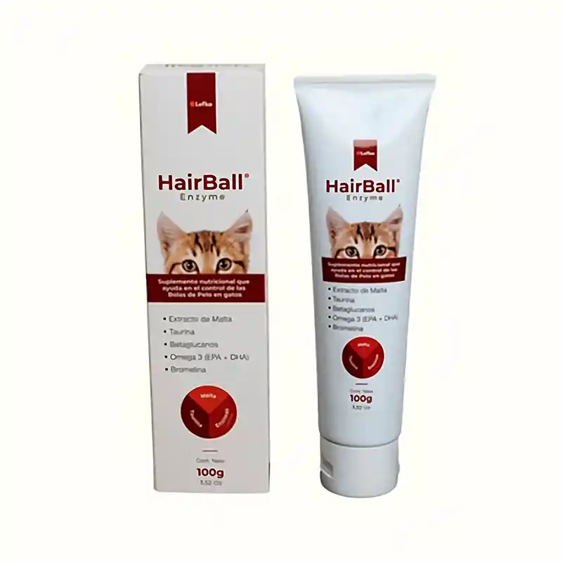 HairBall contiene Betaglucanos que ayudan a reparar un aparato gastrointestinal dañado, fortalecer el sistema inmune, además de evitar posibles trastornos digestivos HairBall contiene Taurina, aminoácido esencial para visión y función cardiaca en gatos HairBall es muy palatable y de fácil administración. Está indicado para gatos de todas las razas y edades. Los gatos son animales muy limpios, se asean de forma frecuente, pasando su lengua por todo el pelaje. Dedican mucho tiempo acicalándose, para esto, usan sus lenguas que están cubiertas de cientos de espinas puntiagudas curvadas en la misma dirección llamadas “papilas”. Estas finas estructuras desempeñan un papel clave en el aseo felino que le permiten arrastrar el pelaje que se le cae especialmente en época de muda. Este hábito de limpieza, sobre todo en gatos de pelaje largo, puede dar lugar a algunos problemas digestivos. Una ingesta excesiva de pelo puede generar la formación de bolas de pelo, que suelen quedarse acumuladas en el estómago, provocando irritación, vómitos, falta de apetito y en algunas ocasiones, estreñimiento y obstrucciones intestinales. Cuando el pelo se acumula de forma excesiva en el estómago, el gato hará un esfuerzo por vomitar, expulsando así la bola de pelo. Sin embargo, en ocasiones no consiguen vomitarla y esta se queda atorada en el estómago o en el intestino produciendo estreñimiento severo e imposibilitando su eliminación. Las bolas de pelo pueden ser el paso previo a los tricobezoares que son acúmulos gástricos muy compactados constituidos básicamente por pelos. Los tricobezoares, pueden provocar alteraciones digestivas con vómitos intermitentes, que en casos graves es necesaria su extracción por métodos quirúrgicos