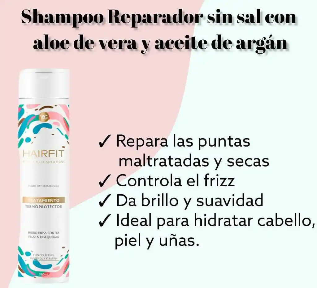 HairFit Shampoo Reparador Sin Sal Con Aceite De Aloe Vera Y Aceite De Argán