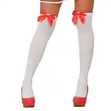 HALLO MEDIAS BLANCA CON MOÑO ROJO
