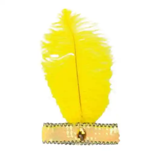 1 balaca de temática Charleston con pluma, lentejuelas, DISPONIBLE SOLO AMARILLO