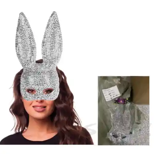 HERMOSA MASCARA CONEJA PLAY BOY CON PIEDRERIA PLATEADA