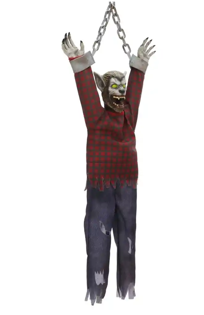 Saluda a tus visitantes de Halloween con esta siniestra forma de celebrar Halloween. Ilumina al hombre lobo malvado. Este espeluznante personaje de 36 pulgadas presenta un hombre lobo suspendido con cadenas. Este hombre lobo tembloroso seguramente asustará incluso a las personas más valientes. Cuélgalo en tu porche, en tu casa, oficina, espacio para fiestas o en cualquier lugar donde quieras dar un gran susto a la gente. La cadena facilita colgarlo, para que puedas decorar tu espacio con facilidad. Para obtener decoraciones y accesorios más espeluznantes y espeluznantes, consulte otros productos de Way To Celebrate, como linternas, calabazas artificiales, guirnaldas, adornos de mesa, velas y más. Se acerca Halloween, ¡así que elige hoy mismo la forma de celebrar Halloween Light Up Evil Shaking Werewolf! Manera de celebrar Halloween Ilumina al hombre lobo malvado que sacude, 36" Presenta un hombre lobo suspendido en cadenas. Sonido activado Seguro que asustará incluso a los más valientes. Cuélgalo en tu porche, en tu casa, oficina, espacio para fiestas o en cualquier lugar donde quieras dar un gran susto a la gente. La cadena facilita el colgado Combínalo con otras decoraciones y accesorios de Way To Celebrate.