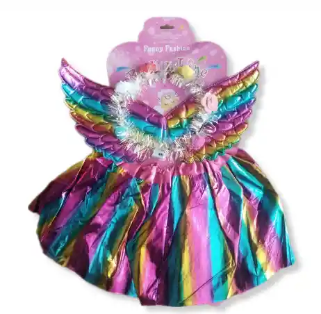 Este de set incluye: Tutu Brillante de colores, Alas de Angel de colores Brillantes y 1 Corona con Luz de colores. Ideal para niñas mayores de 3 años en adelante