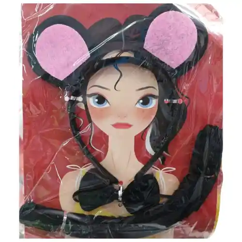 KIT RATONCITA INCLUYE BALACA OREJITAS NEGRA CON ROSADO, COLA NEGRA Y CORBATIN NEGRO