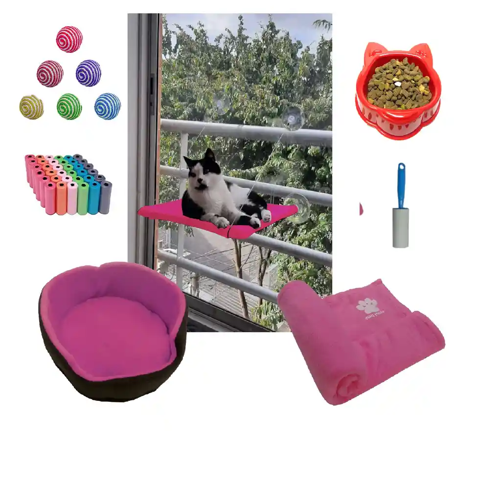 Bienvenido somos HallyPet, tu mejor aliado para el cuidado de tu hijo Perruno y/o Gatuno. Realizamos despachos a nivel nacional todos los días a la 1 pm, si es para Bogotá entregamos el mismo día, las compras realizada después de esa hora se despachan al día siguiente. CAMA HAMACA PARA GATOS La mejor cama para gatos cómoda para tu gato, a nuestro gato le encantará jugar y dormir en ella. La cama para la ventana es práctica, ocupa poco espacio y se coloca en pocos segundos, quedando completamente horizontal. Características del producto: • Dimensiones: ancho de 40 cm, fondo 38 cm, alto 3 cm. • Forma cuadrada • Pesos aproximadamente de 18 kilos. • La Cubierta Inferior es elaborada en material resistente. • Cuenta con 4 Ventosas para pegar al vidrio de la ventana (Solo debes de limpiarla con Agua y jabón antes de usar. • La hamaca es adecuada para tomar el sol de tu gato. • Ocupa poco espacio. • Adecuada para dormir o asiento de descanso de tu mascota. Lleva : Una Cama doble faz para darle un súper descanso a tu Gato La cama redonda doble faz para gatos es ideal para que un gato descanse cómodamente, esta elaborada en tela fleece adicionalmente en su base cuenta con un relleno siliconado supersuave medidas diámetro 47 Cm, Alto 19 Cm Lleva contigo 6 Juguetes sonoros para tu Gat@ Hechos a mano Lleva Comedero o bebedero en forma de cara de gato Hally Pet para perros o gatos, de alta calidad y duradero para alimentar a tu mascota. El comedero o bebedero Hally Pet está fabricado a base de plástico no-tóxico. Con un diámetro de 21 cm en su base. Cepillo Limpiamotas Quita pelos de mascota, cada rodillo se puede usar 30 Veces. Elimina eficazmente la pelusa en pantalones, abrigos, jerséis, vestidos, trajes, ropa formal, muebles y más Cepillo Limpia motas. Tamaño de la hoja 10 Cm x 13,5 Cm 100 bolsas, cada rollo con 10 Bolsas para un total de 100 Bolsas para recoger excremento.
