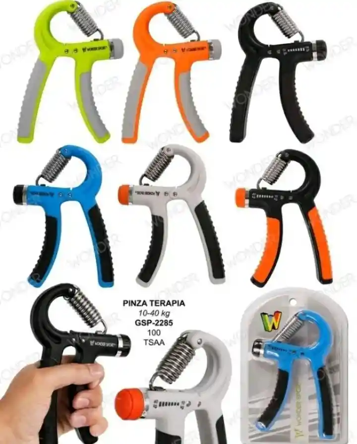 • Portátil • Mango anatómico • Una unidad • Empuñaduras de goma en las manijas para evitar que se deslice • Manijas curvadas para fácil agarre. • Fortalece los músculos de la mano, dedos, muñecas, codos y antebrazos.