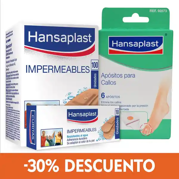 Kit Hansaplast Contiene 106 Unidades. Curitas Impermeables 100 Und + Aposito Hansaplast Callos 6 Und.