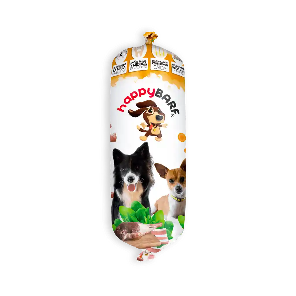 Alimento completo tipo BARF , para ser suministrado a perros de todas las razas y tamaños a partir de los 3 meses de edad, obtenido de la mezcla especialmente balanceada de ingredientes de origen natural. Sus ingredientes carne de pollo, carne de cordero, verdura y avena o salvado de trigo son molidos y mezclados, para luego ser empacados en poliamida y sellado en clips de aluminio para su posterior congelación. Cuanto debo darle a mi mascota: 3-4 meses 10% del peso vivo 4-5 meses 8% del peso vivo 5-7 meses 6% del peso vivo 7-8 meses 5% del peso vivo 8-10 meses 4% del peso vivo 10-12 meses 3.5% del peso vivo Mayores a 1 año 3% del peso vivo Registro ICA 19583AL