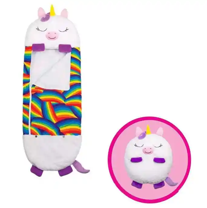 =========================================== Bienvenido/a nuestra tienda ELH COLOMBIA: "¡De la pantalla a tu hogar!" =========================================== saco de dormir con diseño de unicornio y animal, suave y cálido para niños, con acolchado antikick acolchado, cálido bolsillo descapotable, ligero, cómodo saco de dormir de terciopelo. Las almohadas se pueden convertir en sacos de dormir en unos segundos de un divertido cojín de juego a un divertido saco de dormir portátil con almohada incorporada. Perfecto para fiestas de pijamas y visitas familiares o para hacerte sentir cómodo. No se siente restrictiva, fabricado con materiales supersuaves y cómodos cojines, puede mantener a tu hijo cómodo durante las siestas. En el lateral del saco de dormir se encuentra una simple cremallera para que tu hijo pueda estirar libremente su cuerpo sin restricciones en el saco de dormir y permanecer muy cómodo. Apto para niños de 147 cm de largo y 45 cm de ancho. La longitud plegada es de 47 cm. Peso: 795 g. Pequeños y cómodos sacos de dormir, los niños pueden llevarlos contigo. Un divertido amigo para jugar: estos alegres cojines son el compañero perfecto para ver una película, jugar a juegos, leer un libro, dormir la noche, acampar o incluso jugar en el jardín. Lavable a máquina, fácil de limpiar, saco de dormir para niños. El material de felpa de alta calidad para cualquier personaje puede lavarse a máquina.