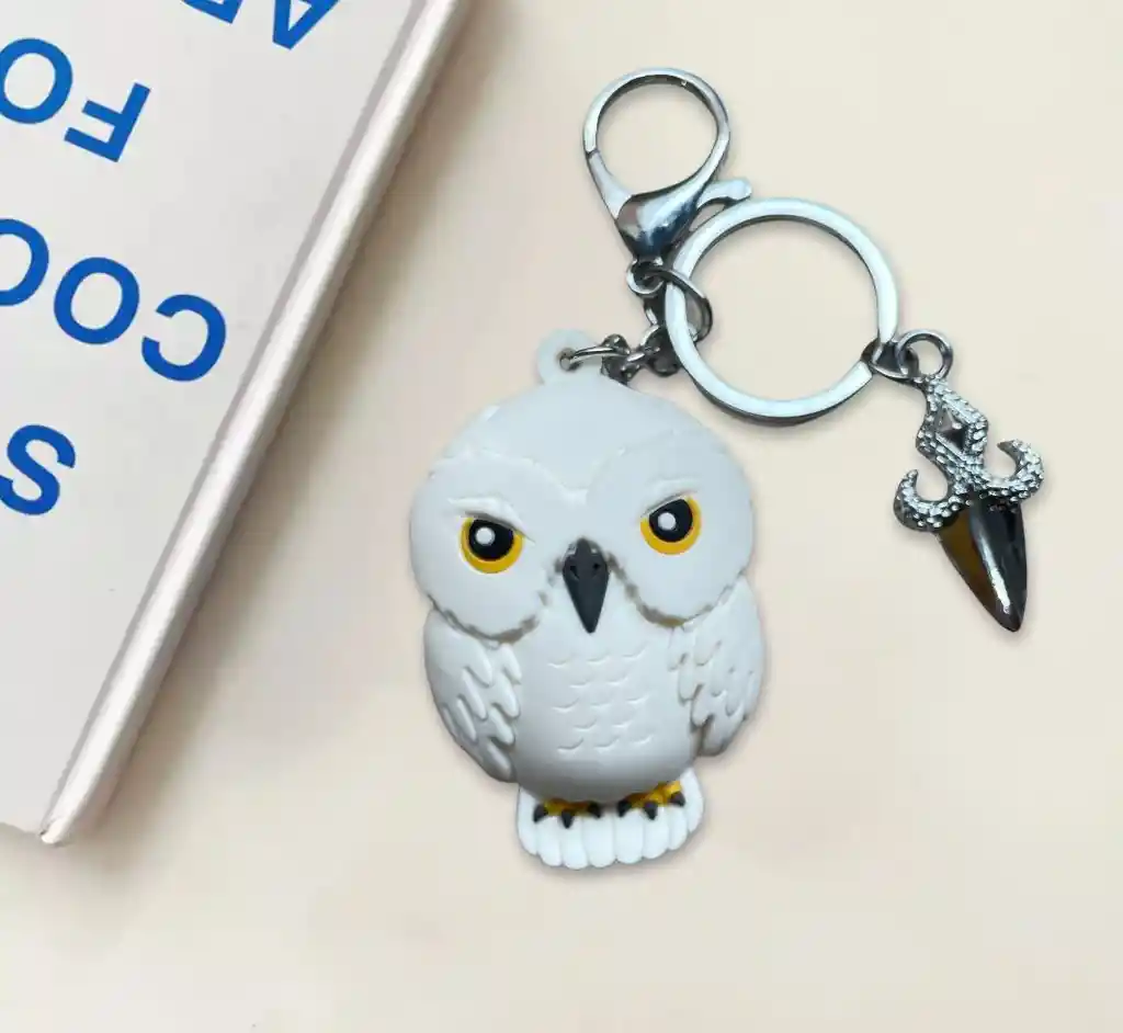 Llavero 3D en silicona diseño Hedwig, tamaño figura 6.4 cm aprox. Importante: Debido a la diferencia de pantallas y efecto de la luz, el color real del articulo puede ser ligeramente diferente al color mostrado en las imágenes.