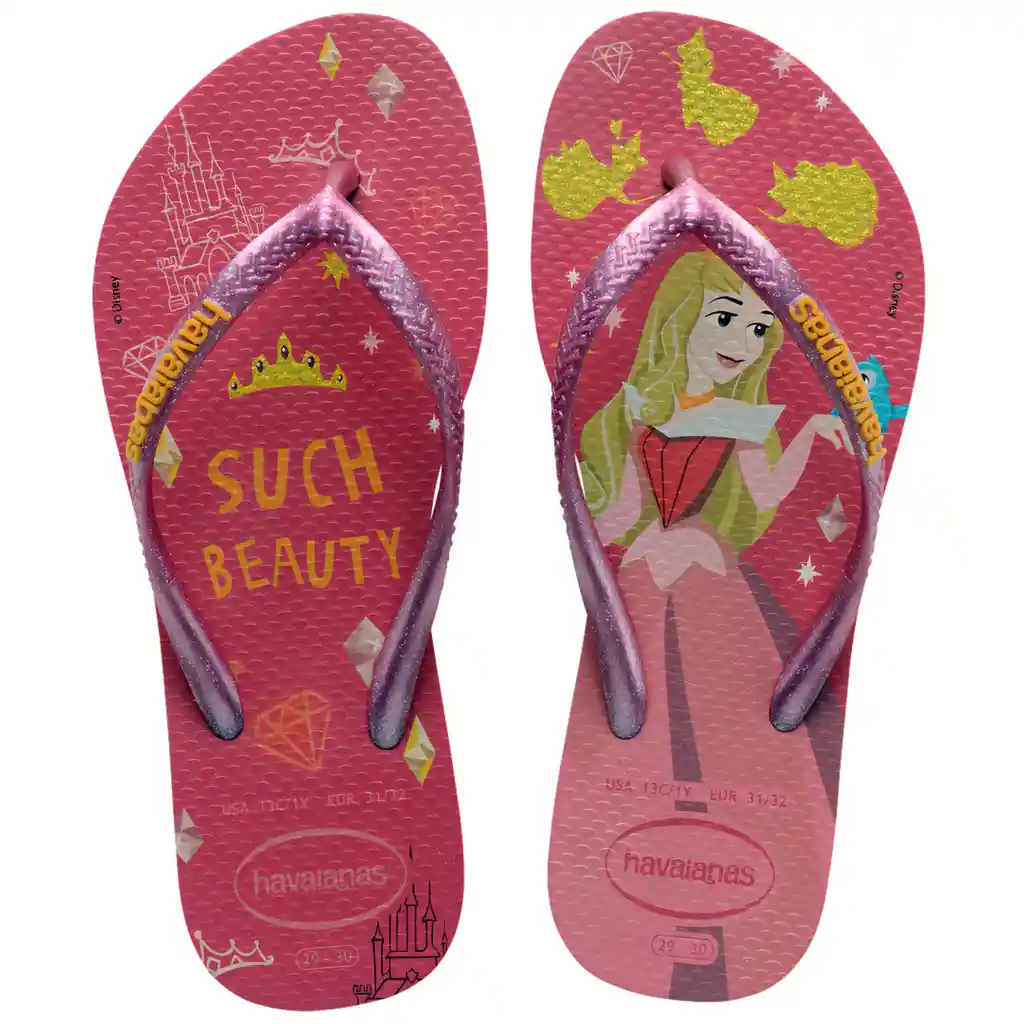 Las Originales y Auténticas Chanclas de Dedo Brasileñas Especiales Para Niñas Con Diseños de Las Princesas de Disney.