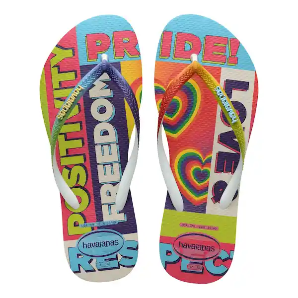 Las Havaianas Top Pride Celebran el Amor la Libertad el Respeto y el Orgullo Lgbtq A+ Con un Estampado y Correas Decoradas Con el Arco Iris.