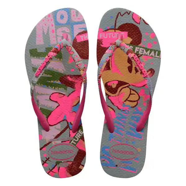 La Encantadora Minnie Mouse Estampa Estas Havaianas Slim Disney Stylish en Una Ilustración Colorida y Moderna.