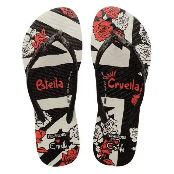 Sandalias Havaianas Slim Cruella fc 0001 7909690669418 Color Blanco Género Mujer ¡Causarás un Gran Impacto Con la Zapatilla Slim Cruella! Con Suelas Inspiradas en la Película; en Los Colores Característicos de Cruella de Vil.