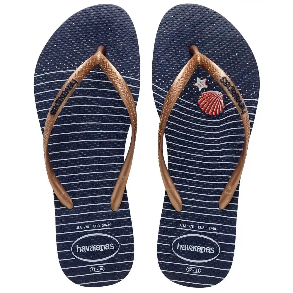 ¡Todos a Bordo Para un Viaje Marítimo Con Las Havaianas Slim Nautical! Inspiradas en la Tendencia Navy Las Sandalias Tienen Rayas Ondas y Otros Elementos en Colores Que Nos Recuerdan el Mar.
